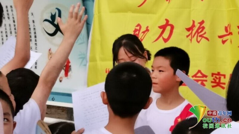 中国青年汉中8月12日电 (通讯员 段涛)为向西部乡村偏远山区孩子推广普通话的规范性、标准性,宣传普通话知识,促进乡村孩子的语言口语表达能力,拉近农村与城市的普通话教育水平差距。由陕西理工大学教育科学学院团委组建的“乡村青春行,助力振兴梦”团队于8月7日前往宝鸡市眉县通过提问、绕口令、宣讲、唱红歌等环节展推广普通话标准型和规范性的重要性。