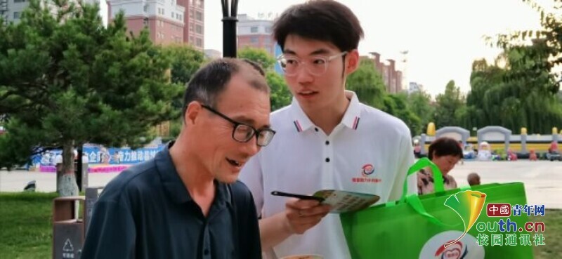 图为志愿者向老人询问如何讲普通话的方法。中国青年网通讯员 翟珮瑶 供图