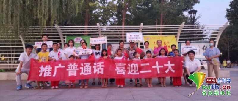图为志愿者团队向小朋友宣传如何讲好普通话。 中国青年网通讯员 王珈博 供图