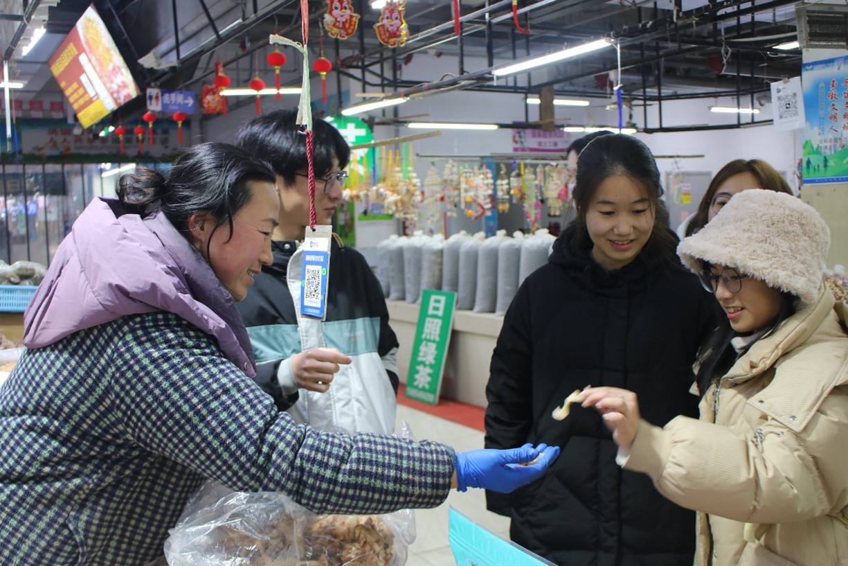 图为实践队成员了解海鲜销售情况。李逸菲 供图