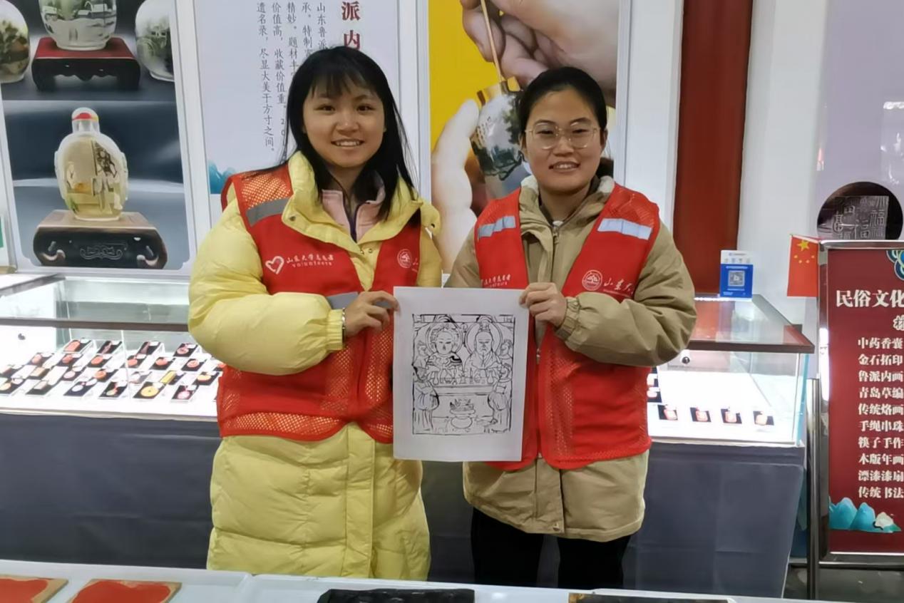 在中国传统文化体验区,宣讲团成员亲身体验了木版年画的制作过程。在非遗传承人的指导下,同学们通过刻版、上色、拓印等步骤,感受传统艺术中蕴含的匠心与智慧。木版年画“门神”“福禄寿”等主题不仅传递着吉祥寓意,更映射出中华文化对家庭、社会和谐的价值追求。