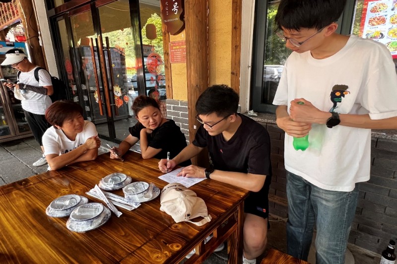 图 6为团队成员在与望仙谷一民宿老板交流当地环境治理举措 蔡赵浩摄