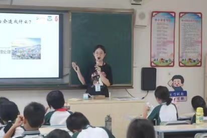 在“越过那片白茫茫的海”中,金秀以垃圾分类、塑料制品的特性和白色污染相联系,让学生了解白色污染对环境的巨大影响,引导学生思考如何从自身做起保护环境。金秀先以同学们见过的海的摸样进行导入,向同学们提出问题:‘白茫茫的海’是什么,再引进流小墨这个人物形象使同学们参与到课堂中。从帮助流小墨做垃圾分类进而在最常见的塑料垃圾中塑料的特性和特殊处理方式引出白色污染,前后呼应‘白茫茫的海’,引导学生思考塑料垃圾处理不当会对环境、人类、动植物、水体等造成什么后果,使学生反思应该如何处理生活中的塑料垃圾,如何从自身做起保护环境。经过本节课程,同学们反思自己平时错误的垃圾处理方式,学习到更多如何正确处理垃圾避免污染的知识,也清楚自己应该养成良好的卫生习惯并且呼吁身边的朋友一起保护环境。