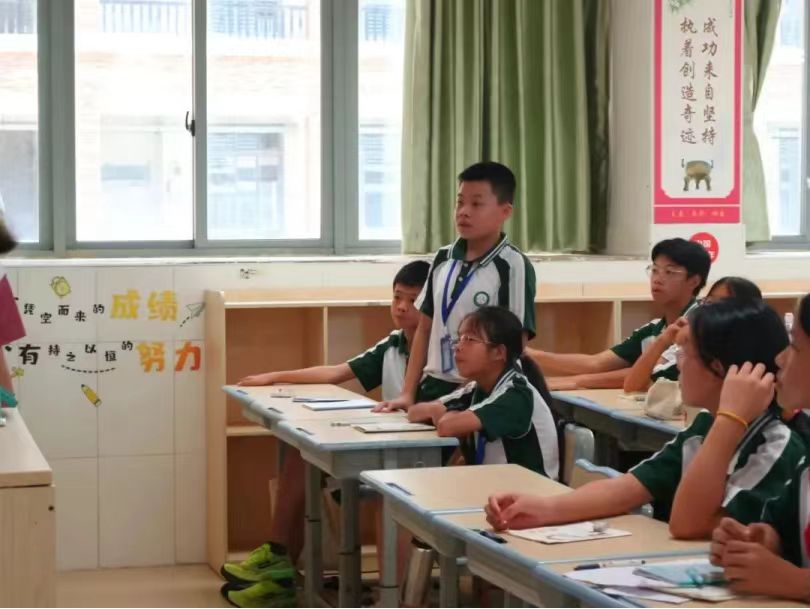 孙乐通过播放视频深化学生对于军人守护边防的艰辛的理解。“清澈的爱,只为中国”,在孙乐生动形象的讲述中,同学们为陈祥榕不负祖国的赤子之心而动容,七年级的同学们表示这位战士哥哥不比自己大多少,可是他却能义无反顾地戍守边疆、为国捐躯,十分令人感动。孙乐通过介绍边防战士的职责、遇到的困难与挑战,继续带领学生学习边防战士的英勇事迹,从中让同学们感悟到边防战士们对国家的热爱以及对职责的坚守。在课堂快结束时,学生们分享了自己的感悟,真诚表达了对于边防战士的敬佩之情。