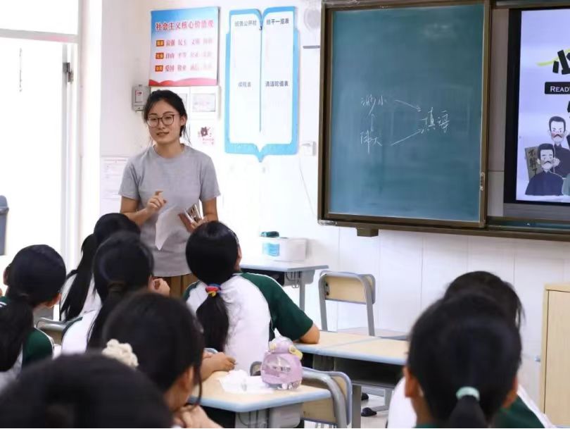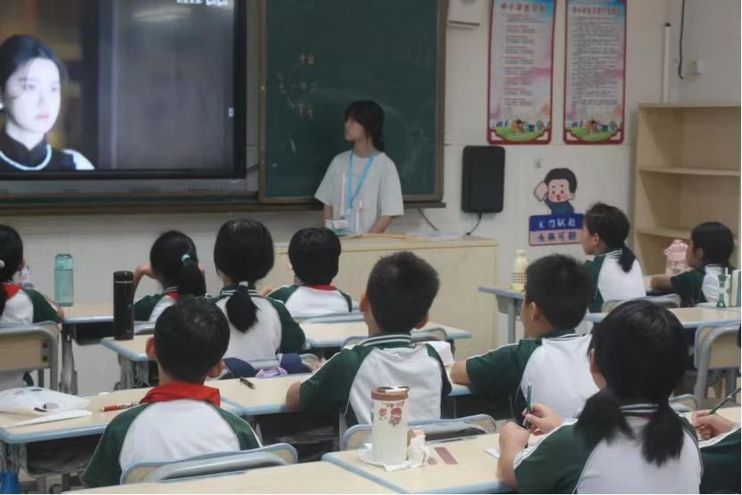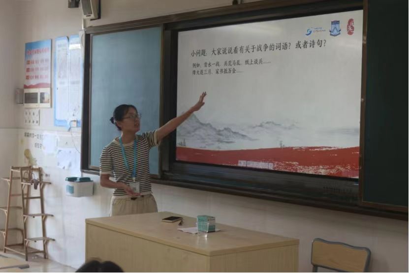 在红色家书讲解课堂,罗镕怡围绕“红色”“家书”等关键词向学生提问,鼓励学生分享自己理解中的“红色家书”。她先从时代背景出发,向学生展示红色家书产生的历史原因。经过之前红色历史的学习,学生们对于红色家书的理解更加深刻与准确,积极回答老师的问题。