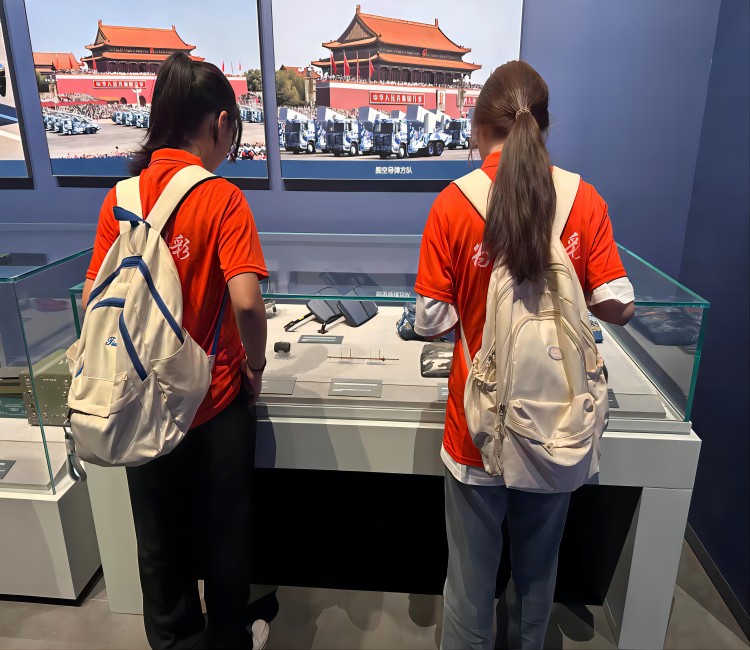 图为“红色文化需传承凝心聚魂心脉传”团队成员观看中国海军的“成长”历程。中国青年网通讯员 陈维洋 摄