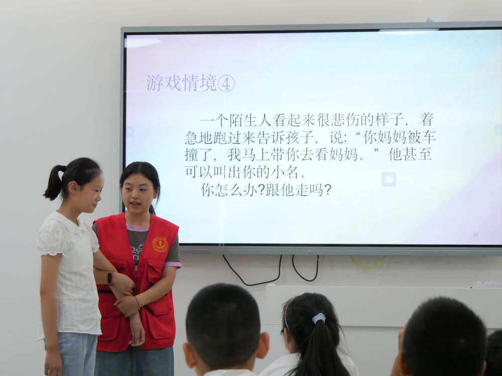 实践团队从安全角度着手,开展了用电安全教育、防拐骗以及防溺水教育等课堂。其目的是教会小朋友如何保护自身安全以及如何对不同情况进行处理。