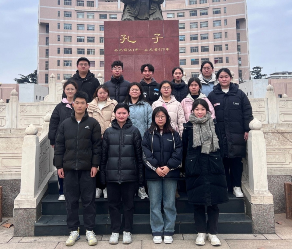图为实践队在学校孔子像前进行合影。中国青年网通讯员 魏传广 摄
