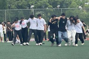 在学生项目如火如荼进行的同时,教师团体项目的比赛也拉开了帷幕。在珠行万里项目中,数学与经济分析系的老师们紧张而专注地操作着手中的工具,小心翼翼地引导小球的运动轨迹,偶有意外发生但都被他们巧妙地化解,最终以最短时间拿下冠军;不倒森林项目中,行政处的老师们时刻保持警惕,紧盯长杆,努力找到适应队伍的节奏,他们凭借出色的身体控制能力和反应速度,在这场竞争中取得了优异的成绩;摸石过河项目中,计算机科学与技术系和网络空间安全系的老师们小心翼翼地踩着石头,不断调整放石块的方向和位置,在他们出色的平衡能力与决策智慧的加持下,最终取得了并列第一的好成绩。
