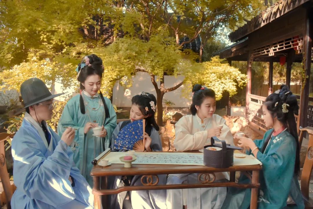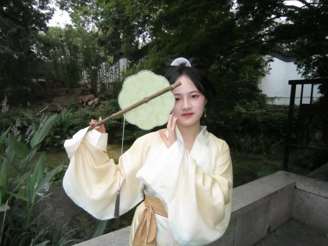 明制汉服端庄与实用结合,立领挺拔,贴合脖颈显精神;上衣多为长衫,配宽大的琵琶袖(袖口收窄,袖身如口袋可储物);外搭无袖“比甲”,下裙必配马面。