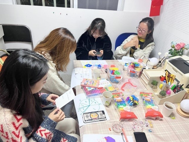 在模拟规划环节,大家用画笔画出自己的理想时间规划表,并描述了个人理想生活,包括运动、学习、娱乐等。接着,同学们用黏土装饰自己的时间规划表,在动手的过程中获得成就感,同时明白了适合自己的就是最好的时间管理。