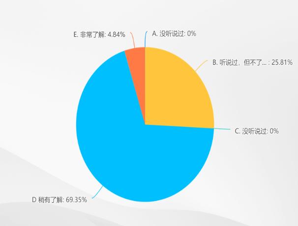 本次线上问卷调查表明,人们对阿尔兹海默症已经有所了解,但是仍然对有关阿尔兹海默症相关知识有较大的了解意愿,特别是有关老年痴呆的预防及患者的照顾等方面了解意愿更为强烈。此次问卷调查为志愿队提供的信息有利于提高宣讲针对性,为今后社会实践活动的开展奠定了基础。