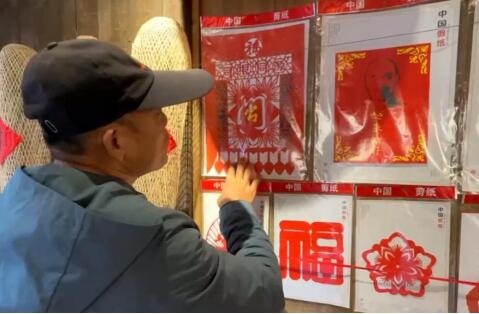 采访结束后,蔡明辉老师带领我队队员参观了其剪纸工作室中的其他作品,并选取部分作品进行详细介绍。例如剪纸作品“同根同源”,引用习近平总书记的发言:“两岸同胞同根同源、同文同宗,心之相系、情之相融,本是血脉相连的一家人。两岸走近、同胞团圆,是两岸同胞的共同心愿,没有什么力量能把我们割裂开来。”融入对联元素“两岸一家亲,闽台亲上亲”;中间采用套色剪纸,草书的“闽”字中蕴含着台湾的“台”;顶部“福”字不仅有福建之“福”,也代表着中华民族对美好生活的期盼祈求和人民质朴的心愿和期待。