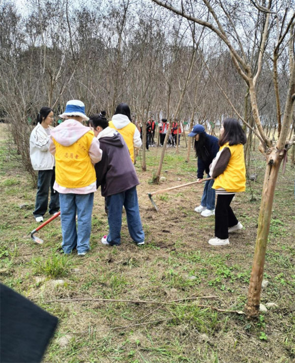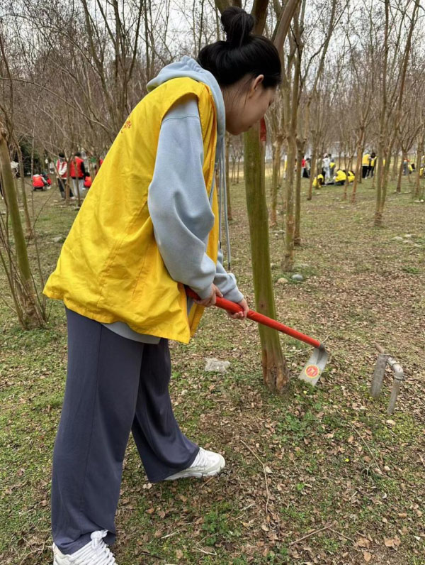 种下一抹绿,播一片春光。下午四点,志愿者们早早地在艺术楼大厅里集合,领取铁锹、锄头和种子,随后在青年实践中心委员的带领下,来到感恩林进行植树。按照委员的指示,同学们相互配合,井然有序地完成培土、浇水等一系列工作。随着沉香桂、太阳花的种子被埋入土壤,同学们的脸上不约而同地露出喜悦满足的笑容。