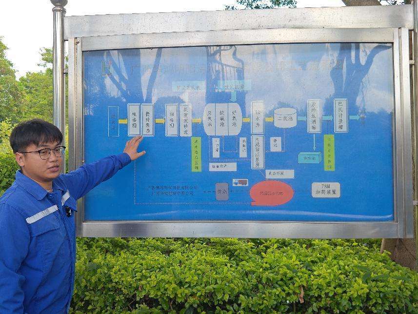 (图为华鸿水务集团工作人员向实践团讲解污水厂工作流程)
