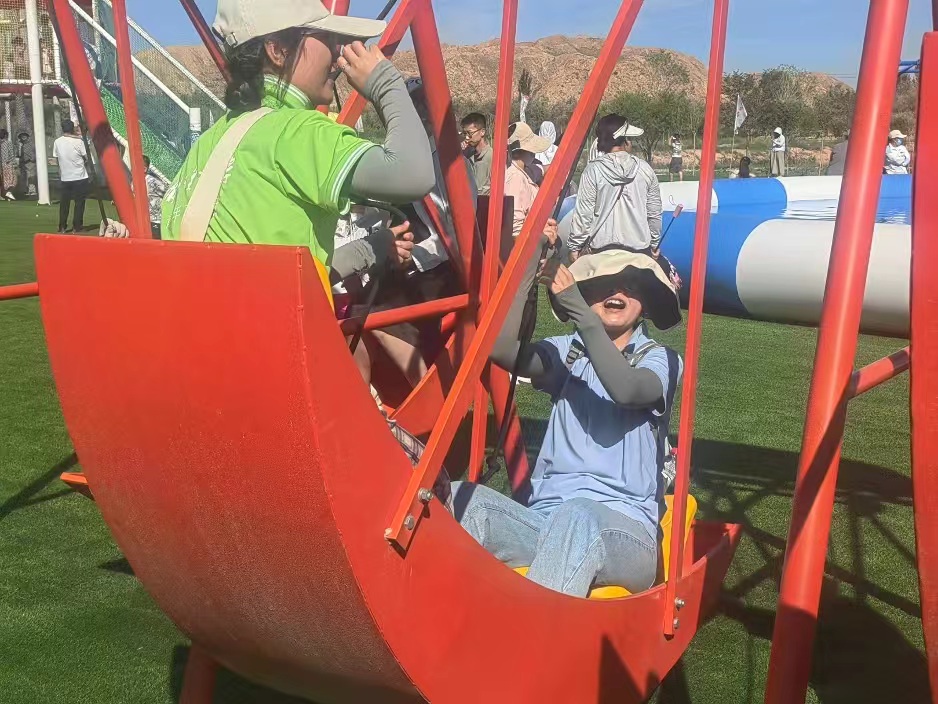 图为实践队员在体验游乐项目 通讯员 韩紫妍 供稿