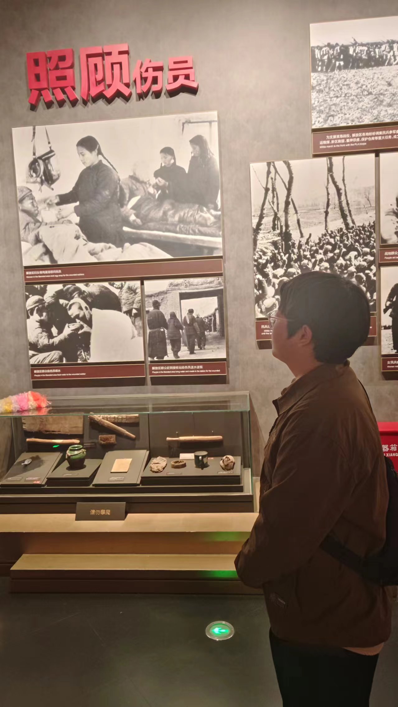 为进一步了解先烈事迹,重温革命传统,队长郭梓蕲进一步参观了纪念馆,纪念馆通过展陈图片、实物、场景复原、浮雕、蜡像及声光电多媒体技术,让团队成员置身淮海战役规模宏大、战场辽阔、战斗激烈、人民支前的场景当中,沉浸式接受一场爱国主义、革命传统教育。