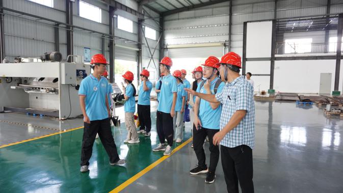 在车间技术人员的带领下,团队成员们观察了车间设备并与技术人员进行学习交流。技术人员十分耐心地向团队成员介绍设备用途及工作原理。此外,技术人员还热心地讲解了现代环保设备制造标准。他提到,行业在不断向前发展,设备制造也应顺应时代潮流、不断创新制造。