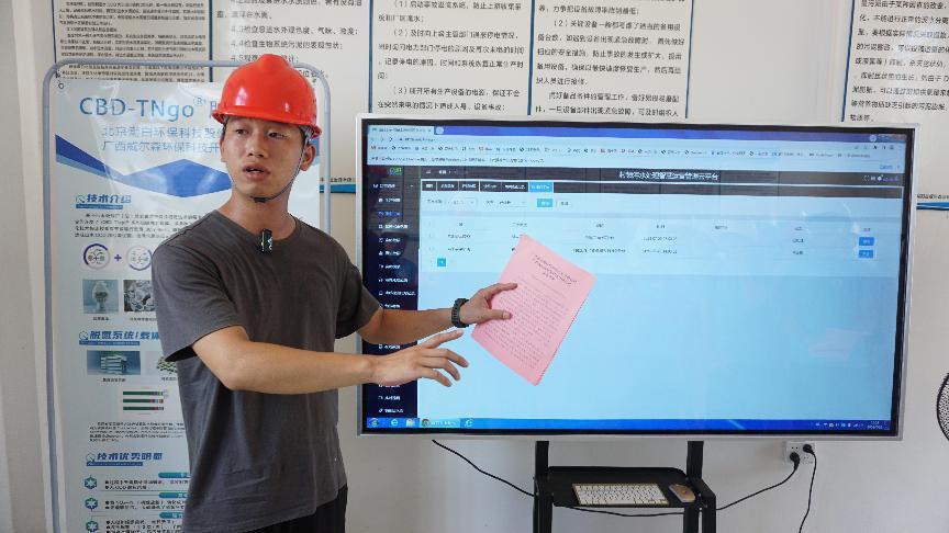 (图为华鸿水务集团工作人员向实践团讲解污水厂工作流程)
