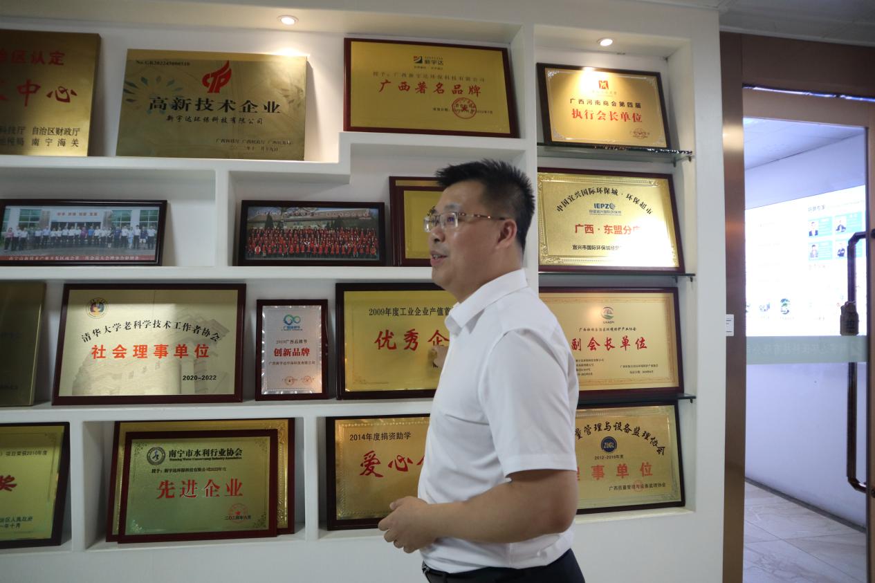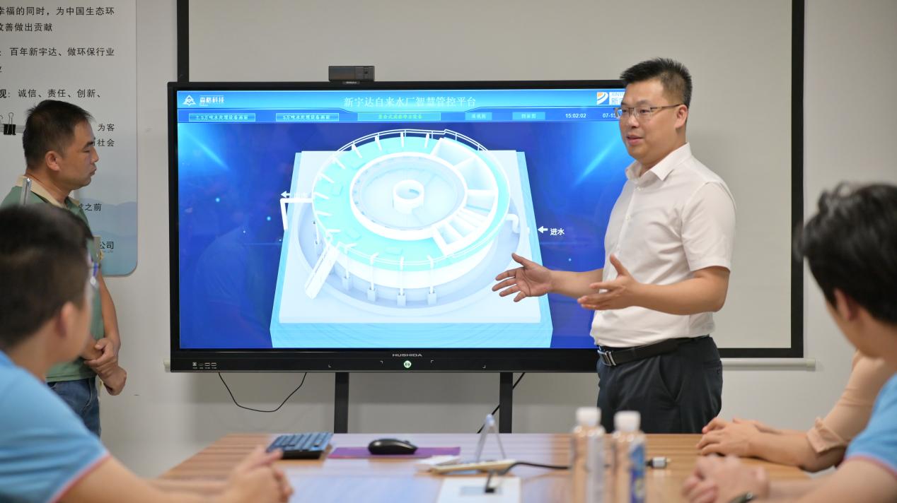 在公司负责人的热情接待下,实践团成员们首先进入公司的展示间,通过讲解员专业生动的讲解,详细了解了公司的给水净化处理、工业污水处理、农村生活垃圾处理等领域的技术成果,指出了这些技术与传统技术的革新之处,为团队成员解答疑惑。