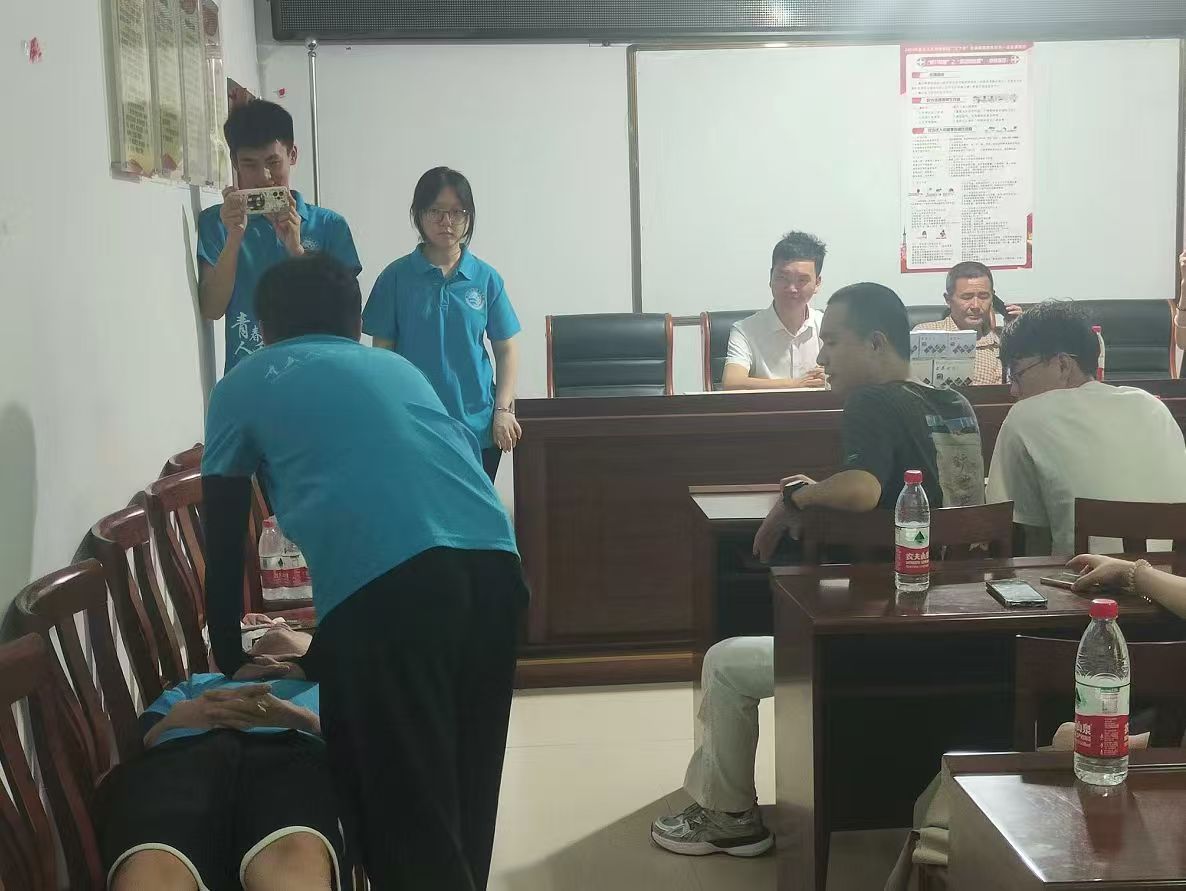 下午,实践团在天馆乡村委会为当地学生和农户举办了急救知识讲座和模拟演练。团队通过手把手指导,使农民朋友掌握了心肺复苏(CPR)技能。现场详细演示了成人心肺复苏的操作流程,并强调了按压的正确位置、方法和频率,确保急救有效性。同时,团队讲解并演示了儿童和婴儿心肺复苏的不同方法。参与者们表示受益匪浅,显著提升了应对突发事件的信心和能力。