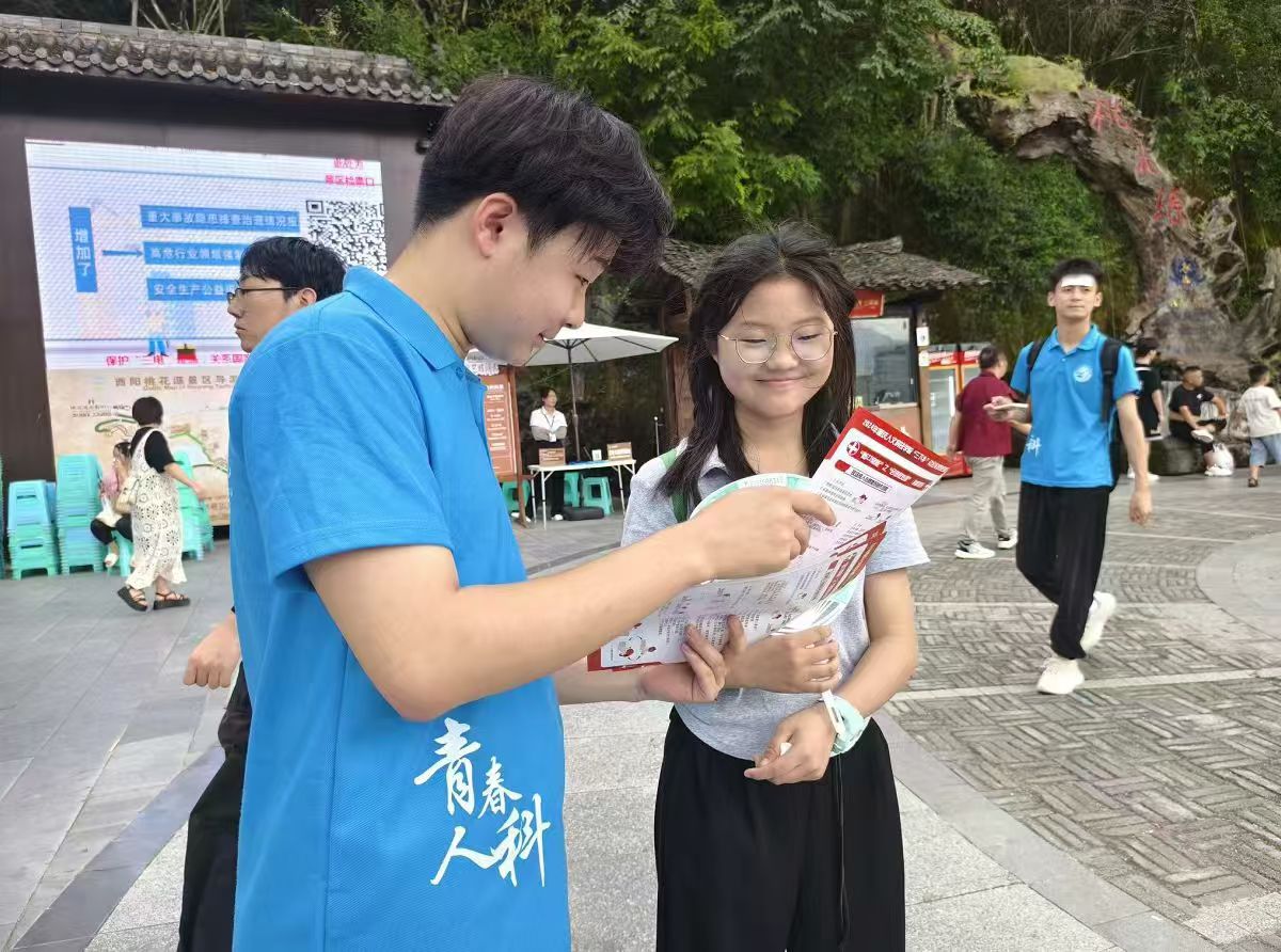 活动伊始,实践团成员在酉阳县街头分发急救知识传单,并耐心向居民讲解心搏骤停及其急救措施。心搏骤停是一种致命状况,若不及时处理,可导致临床死亡。团队成员详细介绍了心搏骤停的分类、院外心搏骤停生存链的重要环节以及心肺复苏的基本原理。