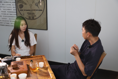 图为实践团成员访谈宁海诗路竹韵博物馆负责人杨维炉。