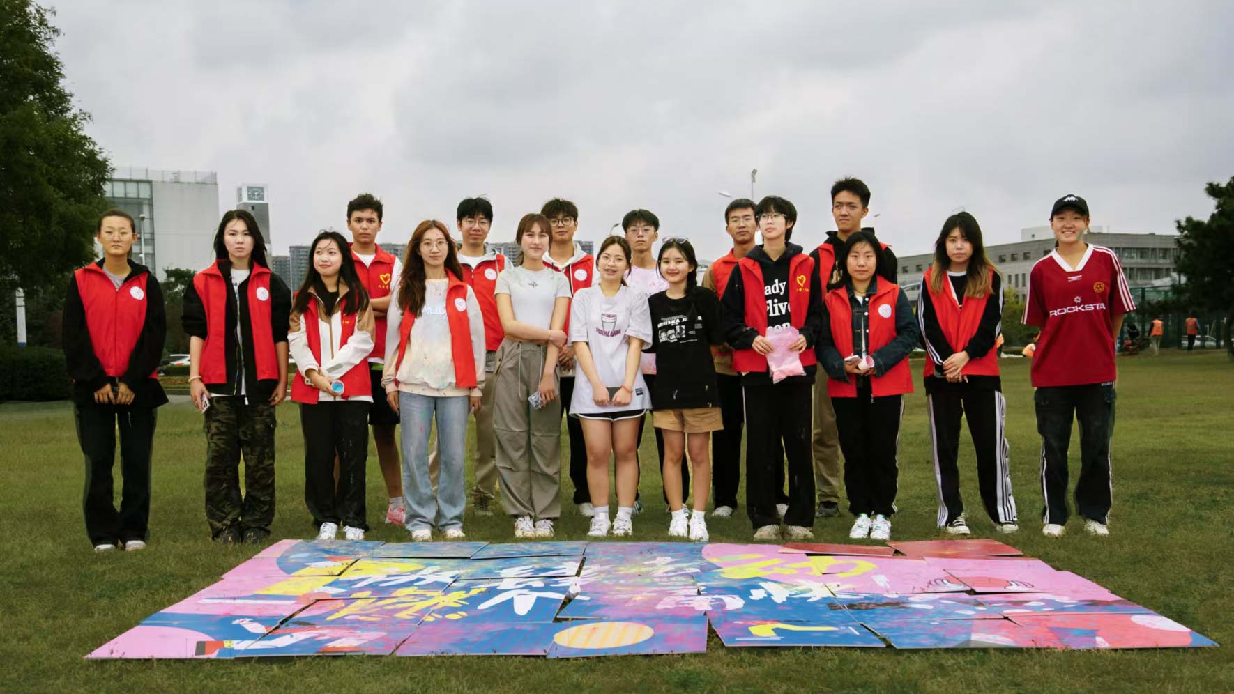 建国75周年之际,为培养大学生爱国情怀,展现当代青年活力,10月13日14时,中国石油大学(华东)材物 2302、车辆 2301、车辆 2303、高体 2301 等团支部及材料学院、机电学院长跑队联合国际教育部组织了一场主题为:“辉煌七五载,彩跑扬风采;携手共团结,拼图绘未来””的团日活动。本次活动旨在通过色彩跑这一活动,向公众展现当代大学生的青春活力,同时,通过拼图游戏增强合作意识,促进国际交流。