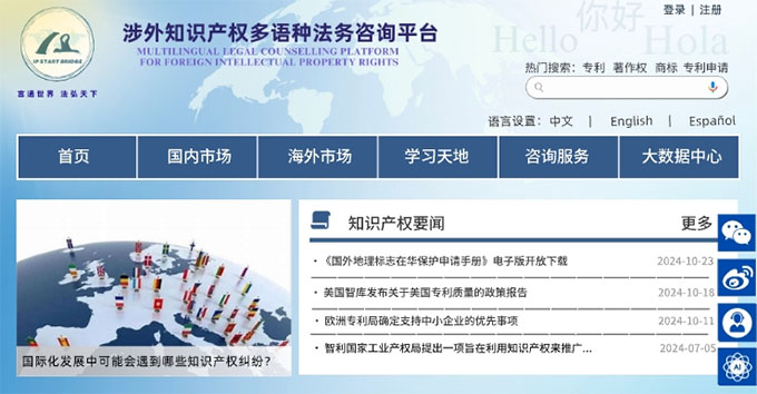 平台的设计还特别考虑了多语言服务的需求,支持中文、英语、西班牙语等多种语言,确保不同背景的用户都能方便地获取相关信息。此外,平台还将定期更新海外知识产权经典案例分析、法律解读和新闻动态,为用户提供最新的行业资讯。