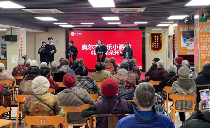 为了让活动更加生动有趣,同学们还设计了《桃花朵朵开》与《学习雷锋好榜样》的奥尔夫音乐小游戏。在轻松惬意的氛围下,同学们与爷爷奶奶们共同参与,不仅重温了经典旋律,更拉近了彼此的距离,编织了一段跨越代际的美好记忆。