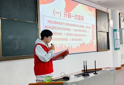 为传承红色基因,弘扬革命传统,4月2日下午,湖北医药学院红色千里行社会实践队走进2024级药护麻醉学班,举办以“井冈山精神及红色文化”为主题的宣讲活动。本次宣讲活动将历史讲述、精神阐释与互动参与相结合,为青年学子带来一堂生动的红色教育课。