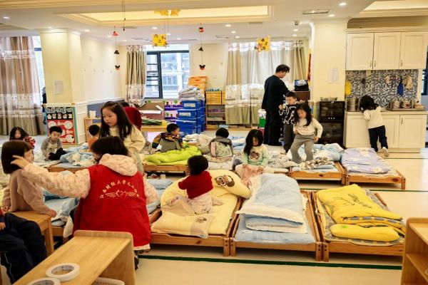 活动期间,按照园方安排志愿者被分派到各个班级,协助老师开展教学、生活引导以及兴趣活动等多项内容,陪伴孩子们学习与游戏,让课堂更有活力。志愿者怀揣热情与朝气,不仅参与故事书朗读、绘画创作、话剧表演等丰富多彩的课堂活动中,还参与帮助孩子们起床穿衣、整理床铺、室外运动等五彩缤纷的日常活动中。不仅如此,在老师准备的活动之外,志愿者积极提出创新想法、参与活动制定,充实课堂内容,使孩子们体验到别开生面的课堂活动。