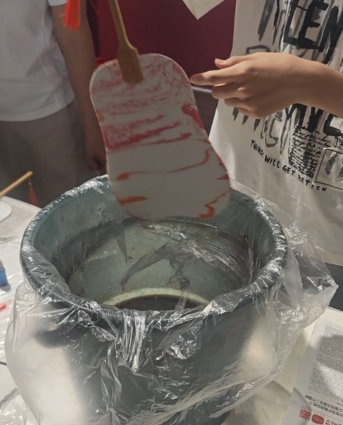 2日下午的参观途中,一位年仅6岁的小男孩接待了我们,之后还与妈妈合作展示《山居秋暝》手碟箱鼓合奏,稚嫩却灵动的旋律奏响深厚艺术底蕴的乐章,也让团队们看到艺术的传承发展早已融入生活点滴。