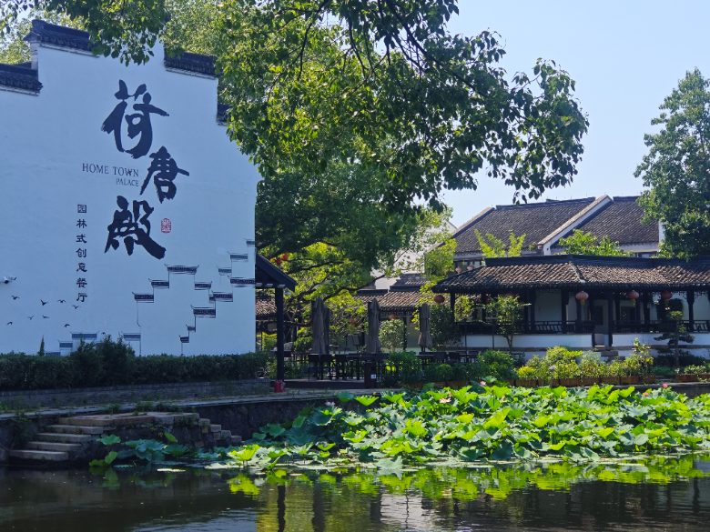 下午团队“换一种视角看古镇”,泛舟游于古镇河道,水上视角回望千年古镇,青瓦白墙、小桥流水的江南水乡风貌尽收眼底。在与船夫的交流中,团队了解到当地人视角下古镇旅游业与生态环境治理之间的双向促进、互相反哺,某种程度上也是对江南水乡韵味的自然保留。