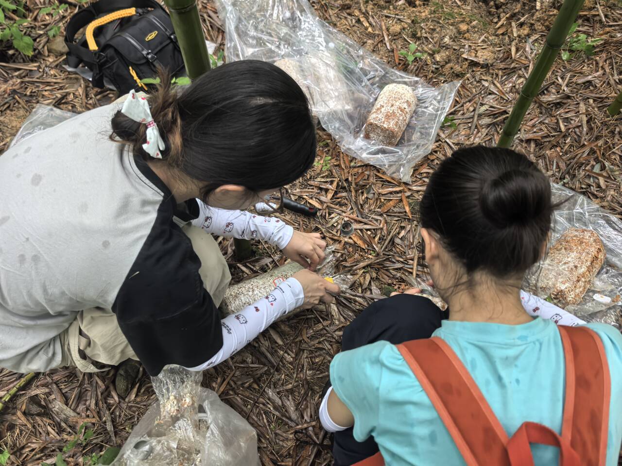 在彭彬老师的带领下,见习队深入竹海林区,实地考察了灵芝的生长环境,并结合理论知识,对灵芝的林下栽培技术、病虫害防治、水分管理、采收加工等环节进行了系统讲解与操作示范。见习队进行了菌棒摆放、覆土等实际操作,同时采集样地土壤带回学院实验室开展理化性质分析,增强了实际操作能力和解决实际问题的能力。