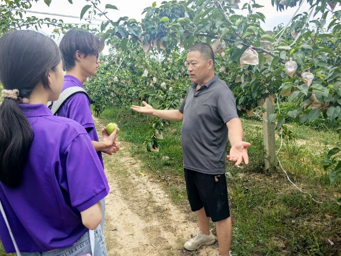 带着理论的智慧与实践的锋芒,“酥梨振兴,农心向阳”实践队奔走在乡土一线,把握了产业链与品牌现状,对此进行了研究与分析,团队与基地负责人保持紧密联系,持续为其建言献策,提供品牌打造新思路,坚持将论文写在产业发展的田野上。