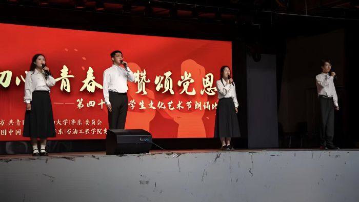 从教室排练到正式登台,在石油工程学院“青春风采,油此绽放”2024级团支部风采大赛、石油工程学院“青春不息,后会油期”2025届毕业晚会、第三届全国重点中学班主任论坛等舞台上,队员们以饱含深情的声音,以《永远的铁人》朗诵节目讲述石油人勘探的艰辛、开采的坚守。让台下观众透过字句,触摸石油精神的温度。让石油故事,先于实践调研,在声浪中播下传承的种子。