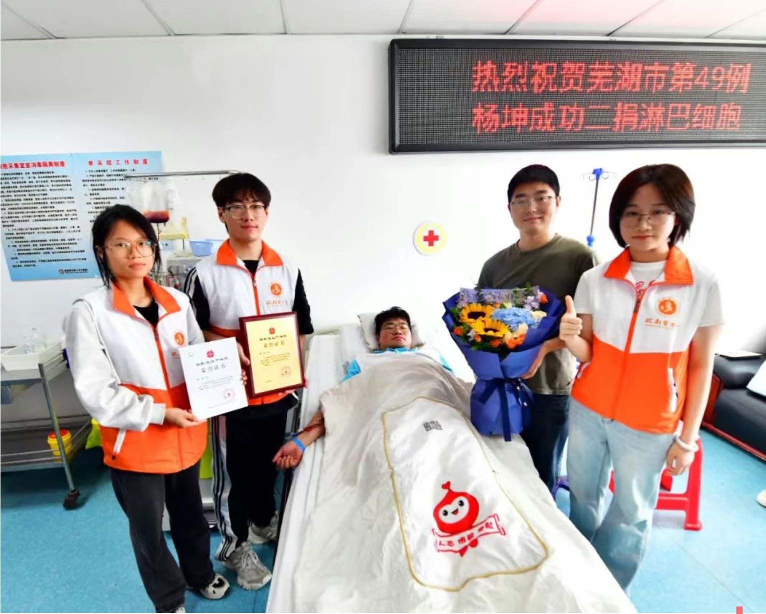 时间回到2024年5月,皖南医学院“医路相髓红十字志愿服务队”组织献血车进校园活动,现场222位献血者中,有117位加入了中华骨髓库。杨坤正是在那次活动中采集血样,成为了中华骨髓库的一名志愿者。令人惊喜的是,仅仅9个月后他就配型成功。今年4月1日,他完成了第一次造血干细胞捐献,成为芜湖市第44位造血干细胞捐献者,救助了江苏省一名血液病儿童。