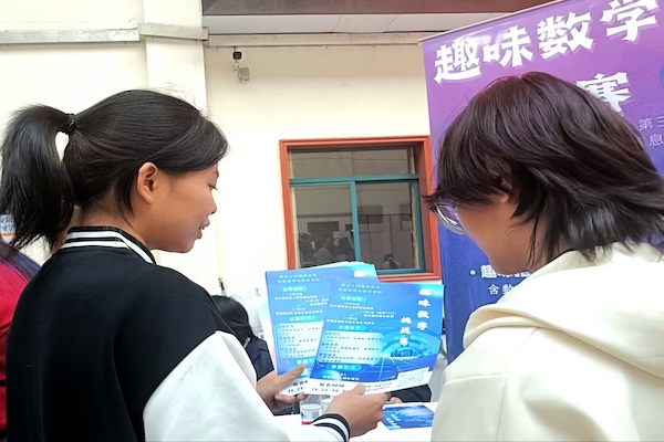 展示现场,学院学术部成员及志愿者们热情主动地向过往同学细致讲解两项竞赛的参与规则、赛程安排及能力提升价值——“趣味数学挑战赛”以闯关形式设置益智题目,兼顾趣味性与逻辑性,让学子在协作比拼中感受数学思维魅力;“数学建模大赛”则聚焦实践应用,引导学生运用数学工具解决现实问题,提升逻辑分析与团队协作能力。风采展示环节大幅提升了大家对趣味数学挑战赛与数学建模大赛的认知兴趣。