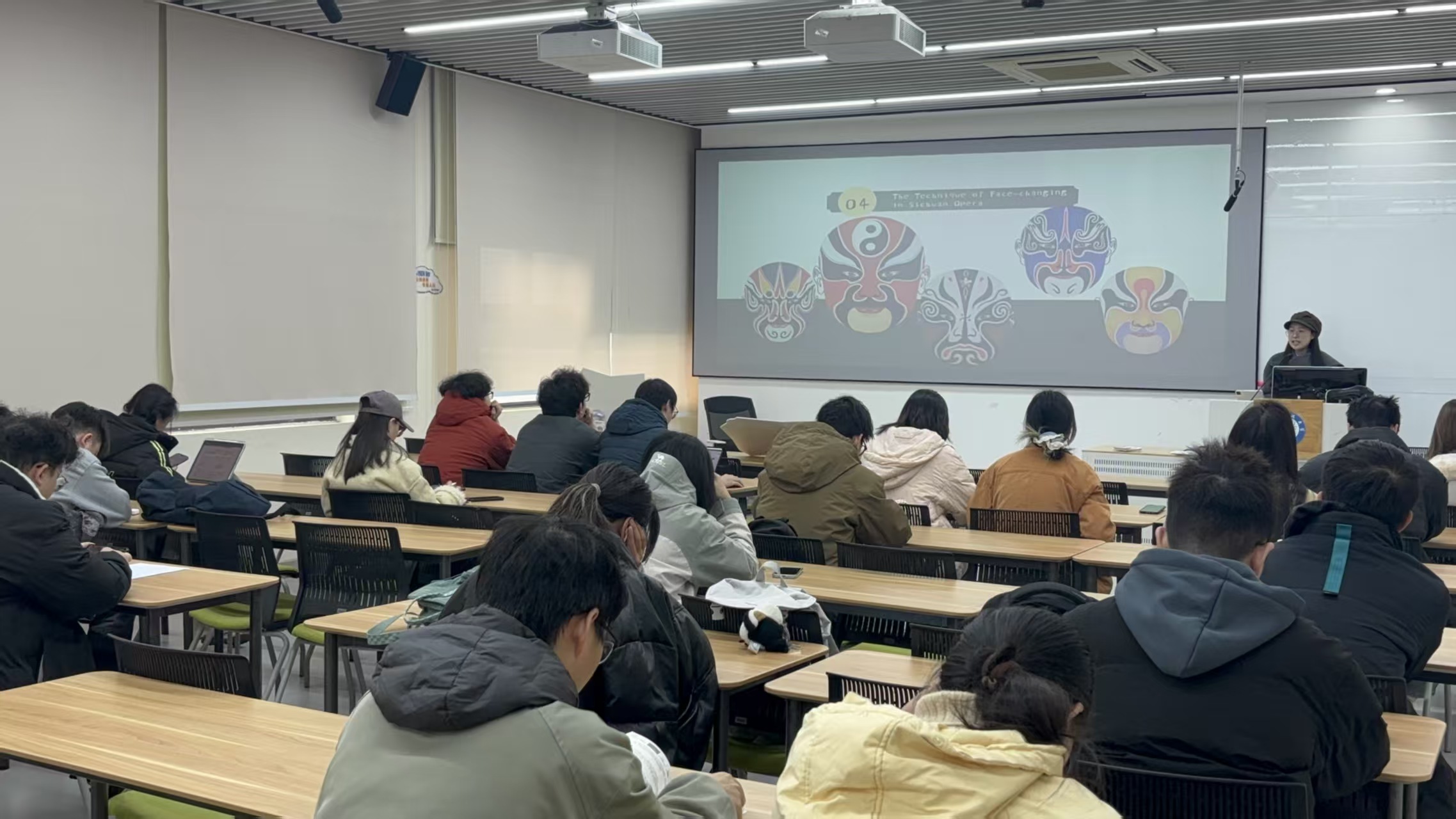在跨文化交流环节,电子科技大学与哈瓦那科技大学学生分别分享各具代表特色的文化内容,中方同学分享川剧变脸特色文化,古巴同学分享老爷车文化与传统舞蹈,为两校师生带来了丰富的文化体验。电子科技大学许飏同学以“Face-changing in Sichuan Opera”为题介绍了中国川剧变脸文化,通过生动的讲解和精彩的视频展示,介绍了这一传统艺术形式的历史背景、文化特色以及其创新发展,让古巴师生对川剧变脸的艺术特点和表演技巧有了更深入的了解。接着,哈瓦那科技大学的同学们也分享了古巴文化的精髓,包括节日、舞蹈、美食等多个方面,特别介绍了古巴“老爷车文化”以及古巴民俗的独特魅力。古巴同学的分享充满了热情和活力,让与会师生感受到了古巴文化的独特韵味和多元魅力。