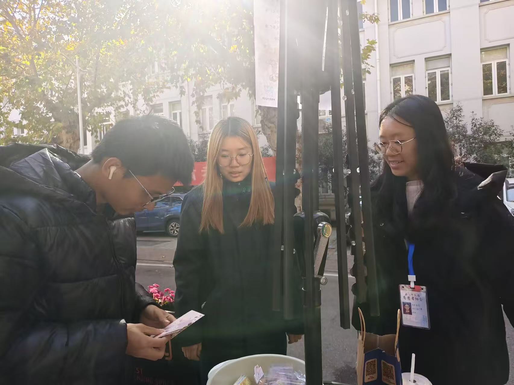 在义卖现场,琳琅满目的商品吸引着过路的师生、游客停下脚步,认真挑选。从实用的钥匙扣、便携的日历本,到精心定制的文创产品,每一件物品背后都承载着一份期待。当一件件义买品从展台离开,一份份善款也随之汇聚,它们将跨越距离,变成御寒物资,在寒潮来临之前,到达等待温暖的孤寡老人手中。