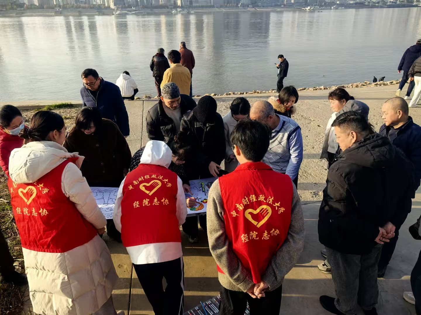 (通讯员:罗银仪)暖阳映江,清风拂岸。为了响应保护长江的号召,中南财经政法大学经济学院志愿者协会(以下简称“经院志协”)在2025年12月14日14:00到18:00于长江观景第一台开展了长江行动志愿活动,用行动守护长江的清澈与安宁。