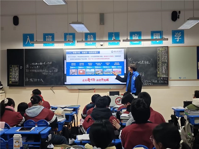 1月27日,程默同学回到母校滁州中学开展高校招生宣讲。他结合亲身经历,系统介绍了我校的办学特色、发展成就与就业前景,解读了优势专业的培养方向,并分享报考经验与录取参考,为学弟学妹的升学规划提供实用指导。宣讲现场气氛热烈,互动积极。此次活动不仅增强了高中学生对学校的了解,也进一步激发了程默的爱校情怀。他在传递“安理故事”的同时,锻炼了表达与应变能力,实现了自我成长与价值传递的双重收获。