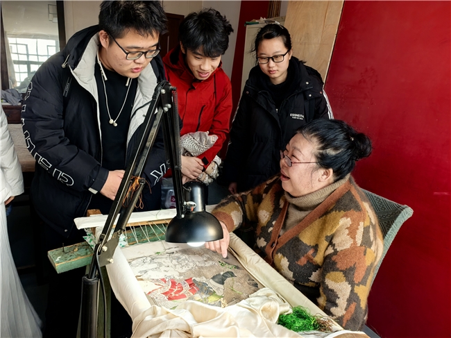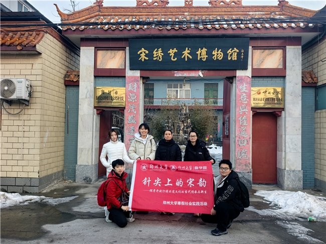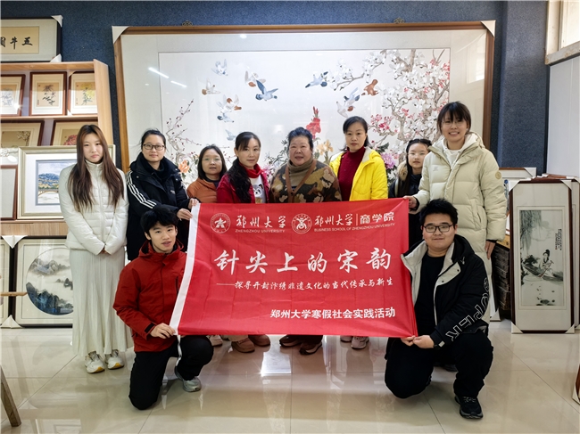 寒冬腊月,年味渐浓,郑州大学商学院寒假社会实践汴绣承宋队怀揣对传统文化的敬畏之心,奔赴八朝古都开封,开展了为期两天的“针尖上的宋韵——探寻开封汴绣非遗文化的当代传承与新生”实践活动。队员们走进开封汴绣厂、宋绣艺术博物馆、开封博物馆,与河南省省级非物质文化遗产代表性传承人王玲老师、河南省工艺美术大师王红梅、开封市级非遗代表性传承人郭华老师及陆静老师面对面深度交流,在飞针走线间触摸千年宋韵的温度,在调研探访中解锁非遗传承的当代密码,用青春视角记录传统文化的坚守与新生。