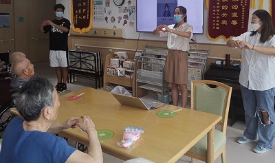 新时代、新思想、新征程,不断地有年轻血液加入到祖国的建设事业中。伴随着新成就而来的还有源源不断地新挑战。实践小组秉承着想要为祖国建设人加油打气的理念,带领全体老人和护理员的工作人员学习了手语操《不放弃》,致敬永远在祖国一线奋战的工作人员们。