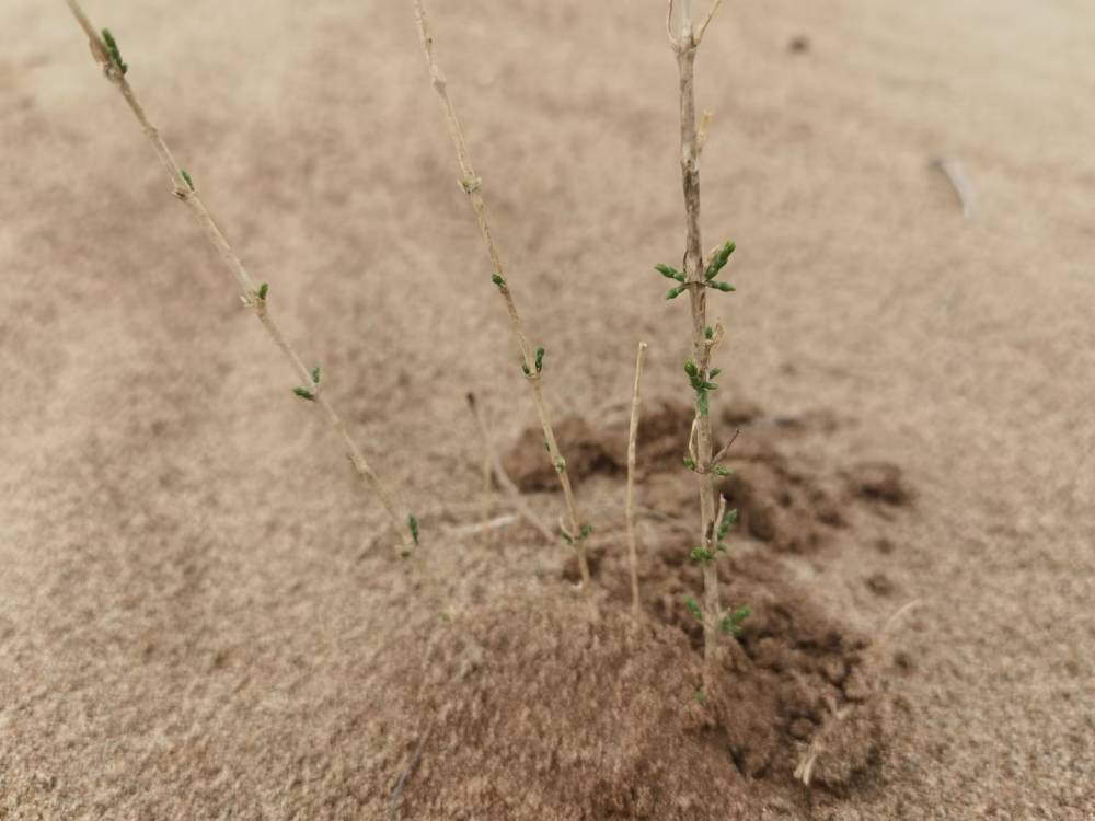 采用何种方法才能更科学地保证树苗的存活率,更高效地实现风沙治理一直是实践团队在不断探究的问题。沙漠风沙大,水资源短缺,盐碱化严重,日照时间长,蒸发迅速等特点致使鲜少有植株能存活下来。只有梭梭、毛条、花棒、沙棘这样的沙漠植物才能勉强形成植被,它们不仅能固定沙土、阻挡风沙,还可以作为沙漠特产,为当地带来经济效益。早期的团队采用直接挖坑种种子,用盆端水浇水的方式,但种子多数被老鼠刨出,剩下的种子也因错位的时令和恶劣环境而成活率堪忧。后来他们采用营养杯培育幼苗再移植、灌溉的方法,虽然使得幼苗成活率达到60%~70%,但方法过于繁琐,不适宜大量种植。