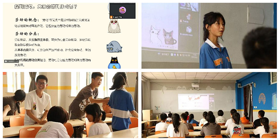这是在勤实践团宣传组同学们为小朋友们进行线上劳动课程宣讲时的场景,在技术组进行技术开发的同时,他们利用身边的资源,走进课堂,向小朋友们传递爱劳崇劳的理念。而为了让自己的宣讲内容更加有趣,使其更贴合小朋友们,实践团的成员们也进行了充足的准备,在其中加入有趣的元素,力争让整个宣讲过程活泼生动。