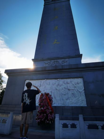 走完台阶,矗立在人们面前的是金寨县革命烈士纪念塔。踏上每一级台阶,我们都觉得脚步沉重,在革命烈士纪念塔前,敬礼并庄严的对着党旗宣读入党誓词,“不忘初心,牢记使命”!位于革命烈士陵园中央的革命烈士纪念塔,气势磅礴、雄伟壮观。塔身正面镌刻着刘伯承元帅亲笔题写的“燎原星火”四个镀金大字。“星星之火,可以燎原”!