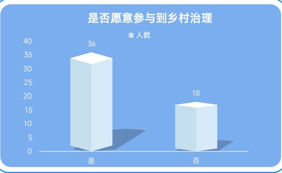 (在本次获取的54份调研问卷中的第四题中,36人愿意参与到乡村治理、18人不愿意参与到乡村治理)
