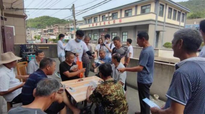 图为实践团在六横岛大岙村宣传